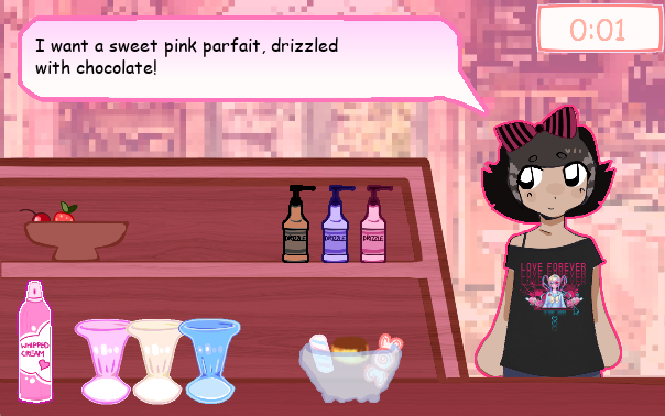 Cute parfaits!! Cute girls!! Cute café!! Make and serve parfait to the people that enter your shop.